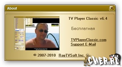 Реально работает. База обновляется без проблем. Более новый плеер (версия 6.5) скачанный с оф. сайта при записи роликов показывал что-то типа "записано TV Player Classic - ом", версия представленная здесь - без таких непрятных добавок. Спасибо.