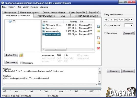 Фактически, CDrtfe является графическим объединением пакета утилит для записи дисков CDRTools, Mode2CDMaker и VCDImager.