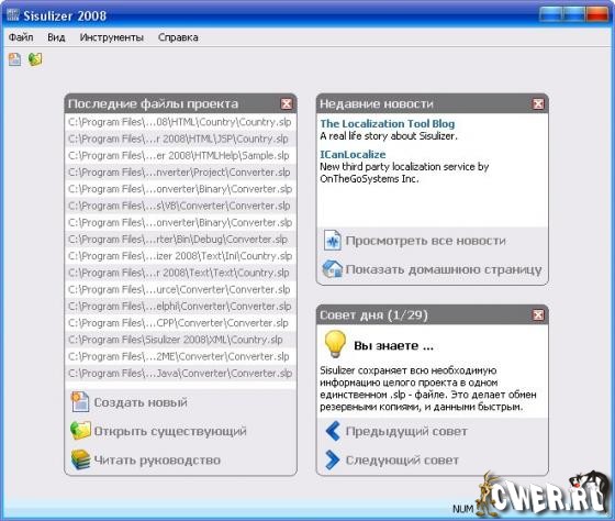 Sisulizer - данная программа предназначена для локализации разнообразного программного обеспечения. Процесс локализации происходит путём сканирования приложения и определения всех участков текста. Поддерживает работу непосредственно в C++ Builder, Delphi, Visual C++, Visual Basic, jаvа, XLIFF. Позволяет визуально работать с HTML и XML, а также отбирать текст из текстовых файлов и баз данных. Программой осуществляется поддержка мобильных приложений: .NET для смарт-устройств, Pocket PC, Windows mobile, Symbian, и J2ME. После сканирования происходит перевод текста с использованием визуального редактора и последующее сохранение проекта с локализацией. После установки программы вы сможете сразу же начать переводить ваши любимые, но не локализованные программы - от вас только требуется знание языков. В данной программе имеется функция автоперевода текста, однако данная возможность будет удобна только при переводе небольших словосочетаний. Программа имеет интуитивно-понятный и многоязычный интерфейс, с поддержкой большого количества языков, включая русский.