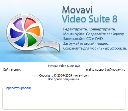 Скачать программу Movavi VideoSuite 8.0 Rus (144,25 МБ):