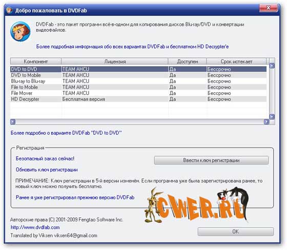 DVDFab – мощный, многофункциональный программный продукт для копирования DVD дисков с возможностями гибкой обработки видеопотока. Программа является одной из лучших на сегодняшний день, из инструментов для копирования, разбиения, пережатия и конвертирования DVD дисков с фильмами. Снимает все защиты и ограничения с диска и при желании пережмет диск большой емкости и вместит его в обыкновенную пустую DVD болванку с минимальными потерями качества (DVD9->DVD5) или разобъет фильм на два диска с полным переносом его меню, удалит всю рекламу, запишет только фильм и многое другое. Программа имеет интуитивно понятный, мультиязычный интерфейс включая русский.