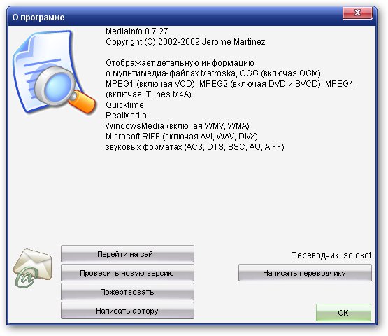 Скачать прогармму MediaInfo 0.7.27 Final (1,79 МБ):