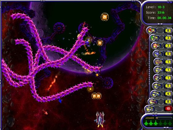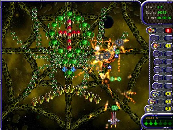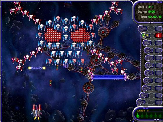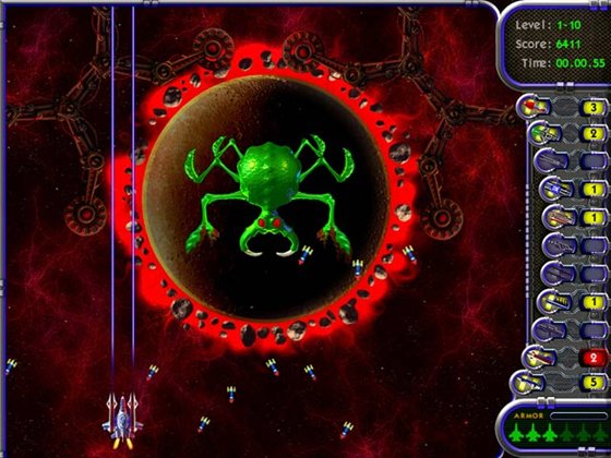 Горячая стрелялка в которой вам предстоит истреблять пришельцев с помощью космического судна, которое имеет арсенал не из маленьких: от простого оружия до плазменных взрывов. Приготовтесь увидеть потрясающие спецэффекты и незабываемые фоны открытого космоса!
