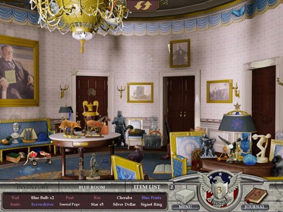 В игре Вы сможете получить хороший урок истории играя в более чем 30 увлекательных уровней. Каждая игровая сцена основанна на реальных фотографиях. Сможете ли Вы раскрыть все тайны Белого дома?