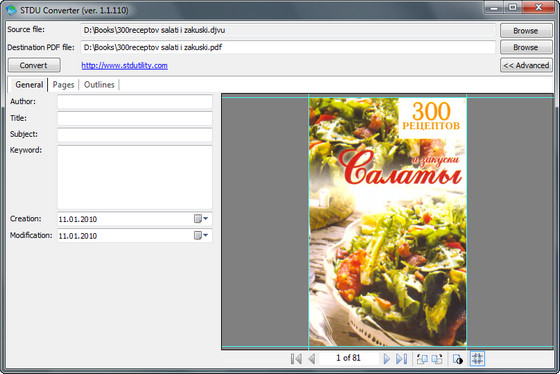 STDU Converter — конвертор DjVu в PDF всего в два клика. Вы можете конвертировать только часть книги или ее целиком, а также построить свое дерево документа на выходе.