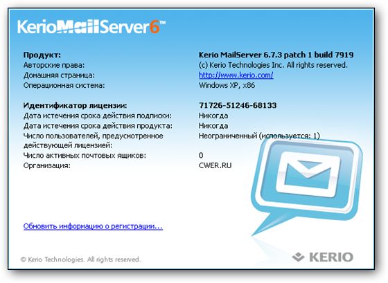 Скачать программу Kerio MailServer 6.7.3 patch 1 build 7919 (65,23 МБ):