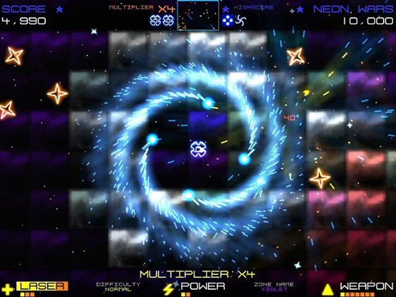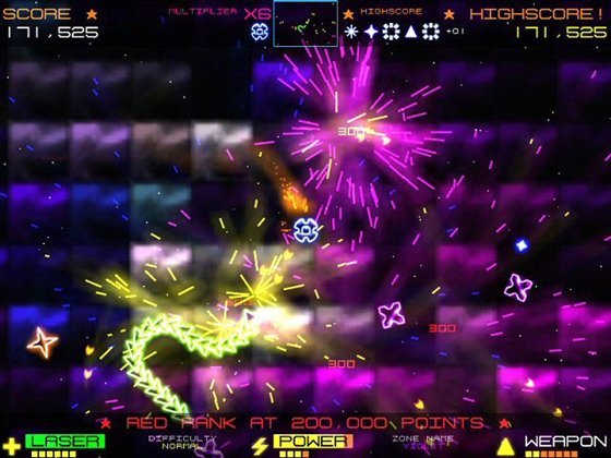 Насыщеный действием мини-екшн, в котором каждую секунду нужно быть начеку, в игре идет постоянное движение и огромнейшее количество графики в виде всплесков импульсов, взрывов, феерверков. В игре пять сложностей и много зон, для противостояния.