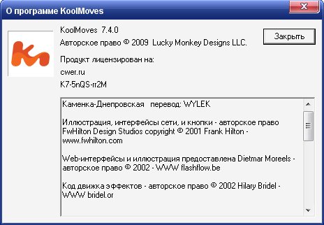Скачать программу KoolMoves 7.4.0 Rus (10,95 МБ):