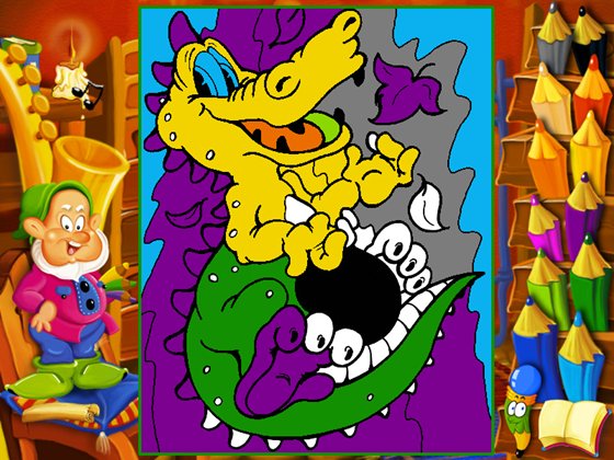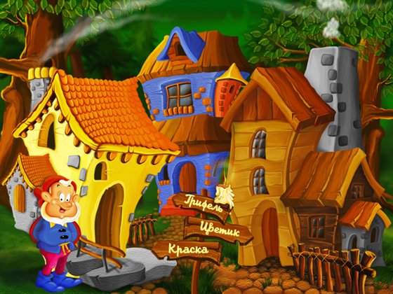 Маленькому посетителю виртуальной творческой студии предстоит раскрасить множество забавных картинок. Оживить черно-белые образы ребенку помогут три веселых гнома-художника - Грифель, Цветик и Краска.