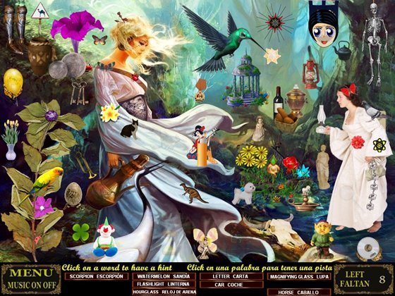 Четвертая часть. Простая и милая игра в жанре "Я ищу", созданная обычным любителем - Feli44, для удовольствия. Игра на двух языках, английском и испанском. Всего в игре 15 уровней чистого поиска, с приятной музыкой, без гонки на время.