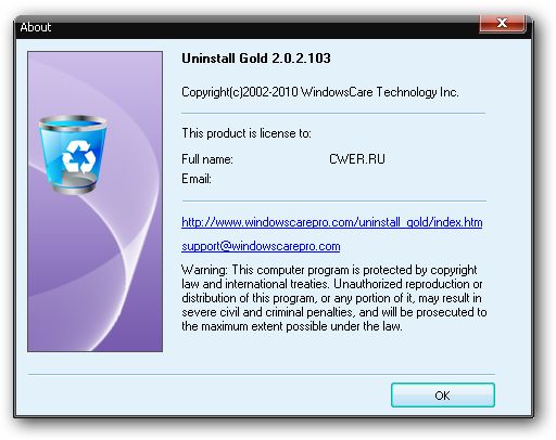 Скачать программу WindowsCare Uninstall Gold v2.0.2.103 (2,22 МБ):
