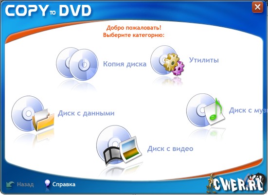 CopyToDVD поддерживает все типы носителей, включая CD-R(W), DVD R(W), DVD-RAM, а также двухслойные диски Double Layer.