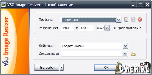 Основное предназначение программы Image Resizer состоит в увеличении и уменьшении размера изображений. Однако, кроме этой функции здесь присутствует возможность изменения уровня сжатия графического файла, конвертирования в другой формат, установки водяного знака и пакетного переименования имен файлов по установленной маске. Уникальность этой программы состоит в том, что все вышеописанные действия можно сделать за один раз. VSO Image Resizer поддерживает все часто встречающиеся графические форматы (JPEG, GIF, BMP, PNG и др.), а также несколько форматов цифровых фотокамер (Canon - CR2, Nikon - NEF и MRW - Minolta).