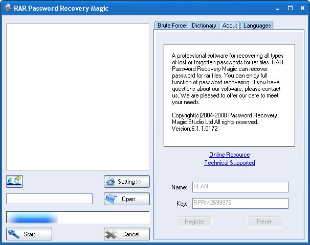 RAR Password Recovery Magic – удобная и мощная программа для восстановления паролей от RAR архивов, созданных программой WinRAR. При подборе пароля используется "brute-force" атака и атака по довольно внушительному лист-словарю. При длительной процедуре может работать на заднем плане, не мешая текущей работе.