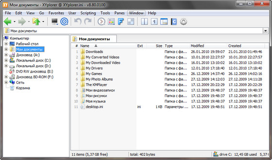 XYPlorer - продвинутый файловый менеджер, работающий под Win98/NT/ME/2000/XP/Vista/7, достойная замена проводнику Windows, с поддержкой вкладок. Мощный поисковый механизм; предосмотр мультимедийных файлов , графики, аудио, видео; HEX и ASCII просмотрщик файлов; работа с mp3-тегами; широкие возможности для визуализации (выделение цветом избранных папок и пр.); формирование фильтров отображения файлов; экспорт информации о файлах в CSV формат и многое другое. XYplorer не оставляет записей в реестре, поэтому возможна работа со сменных носителей, например с флеш носителях.