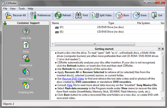 - Provides direct access to the hardware, bypassing the Windows File System. Looks for the lost tracks (sessions) every time when you insert a new disc into the drive
