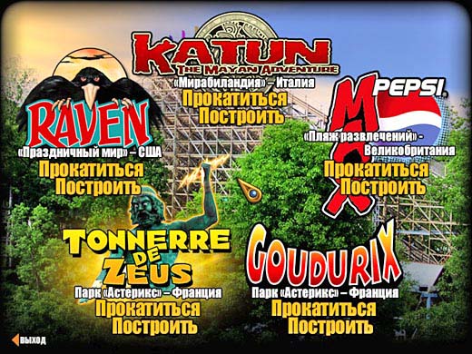 Вы сможете прокатиться на самых известных горках мира: Pepsi MAX в Англии, Tonerre de Zeu и Gouderix во Франции, Raven в США и, наконец, Katun, лучших металлических горках Европы! Детализированная графика позволит вам почувствовать себя в вагонетке, несущейся со скоростью до 110 км/ч. И учтите, что "Мертвая петля" - не самое страшное, что вам предстоит пережить. Перегрузки на крутых виражах сравнимы с теми, что испытывают гонщики Формулы 1 и космонавты.