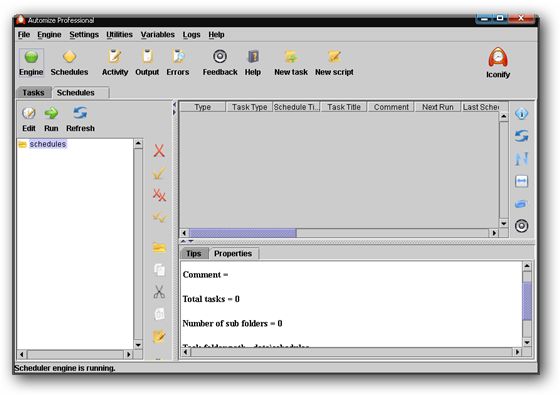 Automize - это мощная программа для автоматизации различных процессов. Программа позволяет автоматизировать скачивание файлов, резервное копирование, синхронизацию с удалёнными FTP серверами, проверку электронной почты, архивирование и многие другие действия. Automize может управляться с удаленного компьютера и сигнализировать о ходе выполнения заданий на электронную почту. Задания в программе отображаются в привычном стиле проводника, для каждого запланированного задания имеется небольшой файл установки, ведутся отдельные FTP-логи и логи шифрования для каждого задания. Программа содержит заготовки для выполнения наиболее распространенных заданий, остальные задания пользователь должен настраивать вручную.