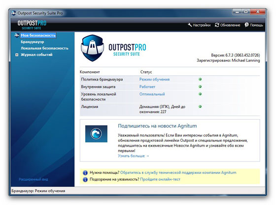 Вне зависимости от того, кто вы – новичок или эксперт в компьютерной безопасности, Outpost Security Suite Pro просто настраивается для ваших потребностей. Используйте встроенную помощь настолько, насколько вам это необходимо; автоматизируйте защиту настолько, насколько вам это необходимо; воспользуйтесь также преимуществом системы ImproveNet, вобравшую в себя опыт других пользователей. Интерфейс программы интуитивно ясен, так что какие бы вы настройки ни выбрали, вы получите требуемый вам уровень защиты.