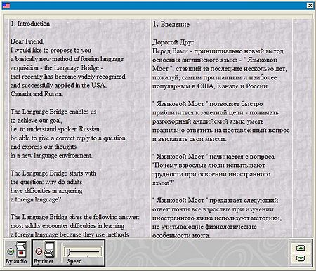 - Языковой Мост (Language Bridge) - новейшая методика, базирующаяся на результатах современных открытий американских учёных в области физиологии мозга. Новизна подхода подтверждается патентом США, выданным в 2002 году. С помощью данной методики освоили язык уже несколько тысяч наших соотечественников, иммигрировавших в США.