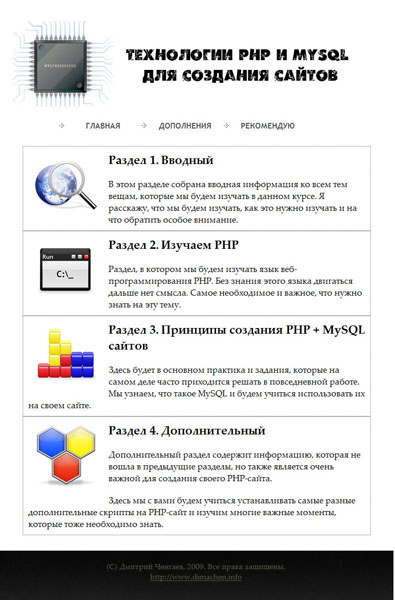 Скачать курс "Технологии PHP и MySQL для создания сайтов" (65,58 МБ):