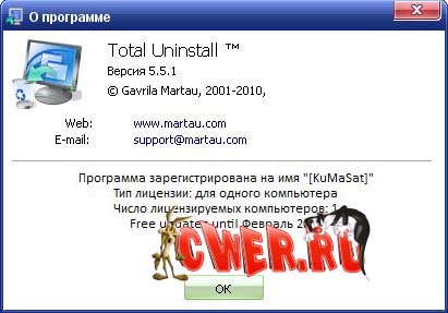 Скачал С какого то сайта этот Тотал(тихая установка)но регистрация (ошибка).Скачал Total Uninstall Professional 5.5.1 с этого сайта.Взял серийный номер и и воткнул в свой триал тотал и он поблагодарил за регистрацию. Все пашет без проблемtongue