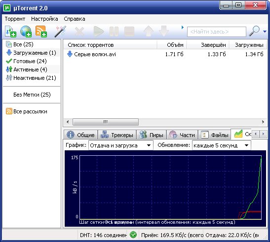 µTorrent - компактный BitTorrent-клиент с поддержкой одновременной загрузки сразу нескольких файлов, настраиваемой полосой пропускания, быстрым восстановлением прерванной загрузки и небольшим использованием памяти.