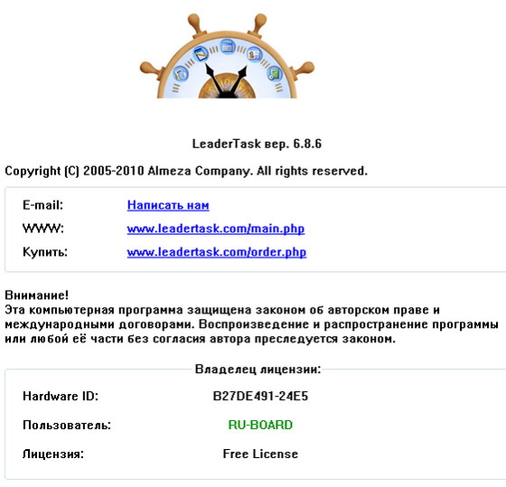 Скачать программу LeaderTask 6.8.6 (12,05 МБ):