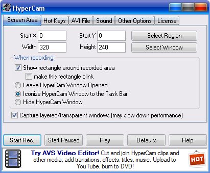 HyperCam - мощная программа для захвата видео, которая позволяет записывать происходящее на вашем экране в AVI файл. Данная программа пригодится вам, если вы захотите сделать презентацию работы какого-либо приложения или захотите создать обучающий или демонстрационный ролик по использованию какой-либо программы. Программа поддерживает текстовые аннотации, запись звука и экранные примечания. Вы также сможете выбрать кадры в секунду и качество сжатия выходного видео.