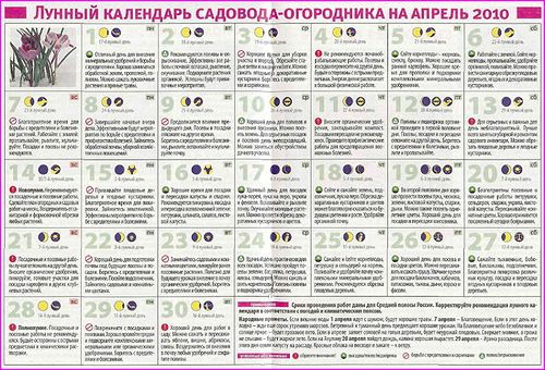 Лунный календарь садово-огородных посевных работ на апрель 2010 года окажется как нельзя более кстати в предверии активного наступления весны. Но и те, кто ведет свои работы на земле невзирая на небесные светила, найдут много интересного в очередном выпуске журнала.