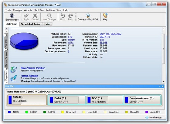 Paragon Virtualization Manager - поможет с легкостью переходить с ОС Windows на виртуальную машину и наоборот. Работайте с виртуальными дисками, используя удобный интерфейс программы, не запуская виртуальную машину. Переходите с одного виртуального окружения в другое, переносите данные с физического окружения в виртуальное и наоборот, разделяйте диск на разделы и т.д.