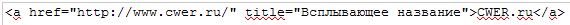 Так не работало никогда. Атрибут title служит для всплывающего названия ссылки. Или Вам неясно значение слов "всплывающая подсказка"? Собственно текст ссылки помещается между открывающим и закрывающим тегом a. Например, так: CWER.ws