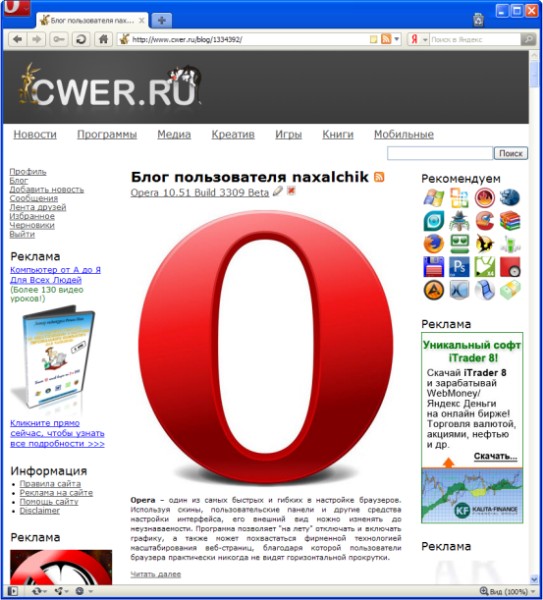 Скачать программу Opera 10.51 Build 3309 Beta (11,36 МБ):