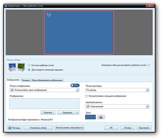 - Использование изображения фона рабочего стола, распределяющегося по всем мониторам