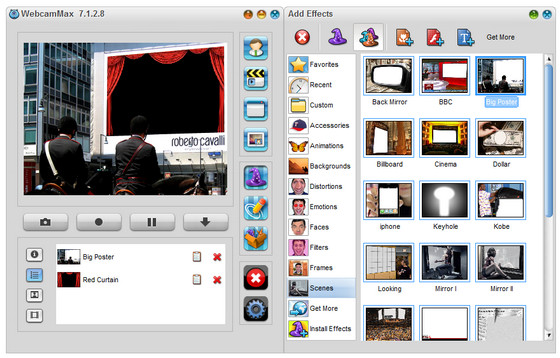 - More than 1,000 effects at www.webcammax.com, including Mosaic, TV wall, Movie scene, Water, Smog, Emboss, Emotions and etc