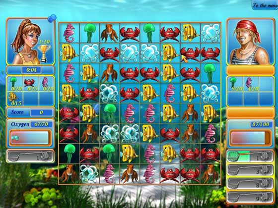 Отличная игра «три в ряд» «Tropical Shop Fish. Annabel's Adventure» понравится всем поклонникам этого не стареющего жанра. Отличная графика, расслабляющее музыкальное оформление, а так же разнообразные задания и мини-игры надолго увлекут вас в атмосферу подводного мира и поиска сокровищ на морском дне.