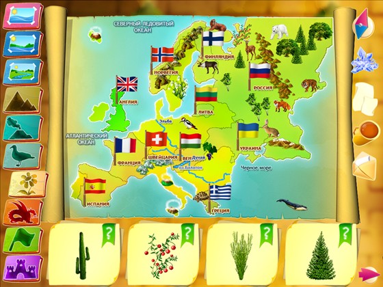 В игре представлены более 300 географических объектов: горы и пустыни, моря и океаны, реки и вулканы, животные и птицы, части света и отдельные материки, государства, памятники культуры и даже сказочные персонажи. Ко всем географическим объектам предусмотрены иллюстрированные или анимированные информационные справки, в которых подобраны наиболее интересные и важные факты.