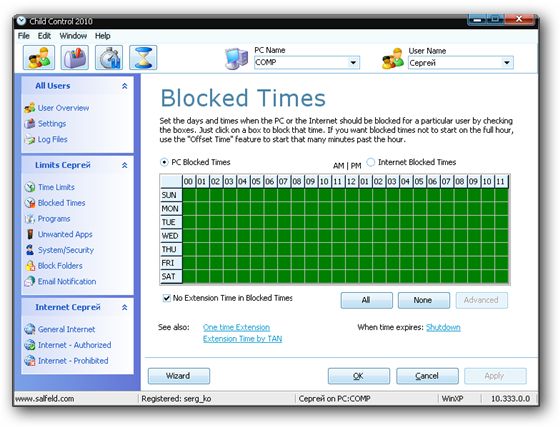 Salfeld Child Control - программа, предназначенная для родителей, желающих, чтобы их дети меньше времени проводили за компьютером, а также для фильтрации открываемых в браузере интернет-страниц и контента. Имеется возможность установки временного ограничения на работу компьютера или защиту паролем. Настройки программы довольно гибкие и осуществляются в несколько шагов.