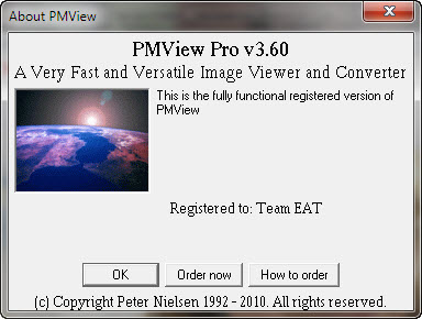 PMView — программа для просмотра, редактирования и конвертации растровых изображений. Главной особенностью программы является невероятно быстрая скорость открытия графических файлов. Программа позволяет открывать более 40 типов графических файлов, включая такие как: JPEG, GIF, BMP, PNG, TIFF и многие другие. Программа включает в себя также различные методы восстановления изображений. Таким образом, если у вас имеется плохое или поврежденное изображение, программа попробует восстановить его на столько, на сколько это будет возможно. Данный инструмент — это не только просмотрщик графики, но также и отличный инструмент для редактирования, конвертации изображений и снятия скриншотов.
