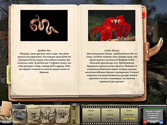 Помимо истории погибшей цивилизации, игра позволяет ознакомиться еще и с животным миром Амазонки. Делайте фотографии различных ползающих и прыгающих тварей и узнавайте обширную информацию по каждому виду. Кроме того, эти фотографии можно устанавливать на рабочий стол в качестве рисунка.