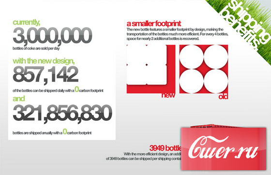 Другая интересная дизайнерская находка — бутылка имеет ребристость, которая позволяет после употребления напитка ее сжать как гармошку, так что при последующей утилизации она займет минимум места.