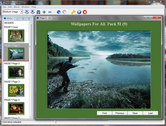 Alchemy Mindworks Presentation Wizard — программа позволяет создавать захватывающие презентации с графикой, анимацией, и другими мультимедийными элементами. Каждая страница вашей презентации может включать изображения, анимацию, видео, звуки и элементы управления Windows (кнопки, списки и т.д.), поддерживается интерактивность. От вас не потребуется знания программирования, а вся работа над презентацией сводится к нескольким кликам мышью.