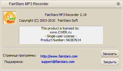 Скачать программу FairStars MP3 Recorder 2.19 + Rus (4,15 МБ):