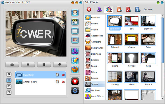 - More than 1,000 effects at www.webcammax.com, including Mosaic, TV wall, Movie scene, Water, Smog, Emboss, Emotions and etc