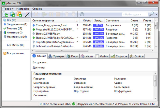 µTorrent - быстрый, удобный, бесплатный и компактный торрент-клент. Клиент µTorrent, на сегодняшний день, является одним из самых функциональных решений для работы с сетью BitTorrent. Программа сочетает в себе оптимальную функциональность при небольшом размере. Поддерживает работу независимо от треккера, позволяет загружать сразу несколько файлов, имеет настраиваемую полосу пропускания, быстрое восстановление прерванной загрузки и многое другое.