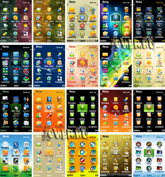 Темы для смартфонов Nokia под управлением Symbian OS 9.1, 9.2, 9.3: Nokia 3250, 5500 Sport, 5700, 6110 Navigator, 6120 c, 6121, 6220 classic, 6290, E50, E51, E60, E61, E61i, E62, E65, E70, E90, N71, N73, N75, N76, N77, N78, N79, N80, N81, N81 8GB, N82, N91, N92, N93, N93i, N95, N95 8GB и др. cwer.ws