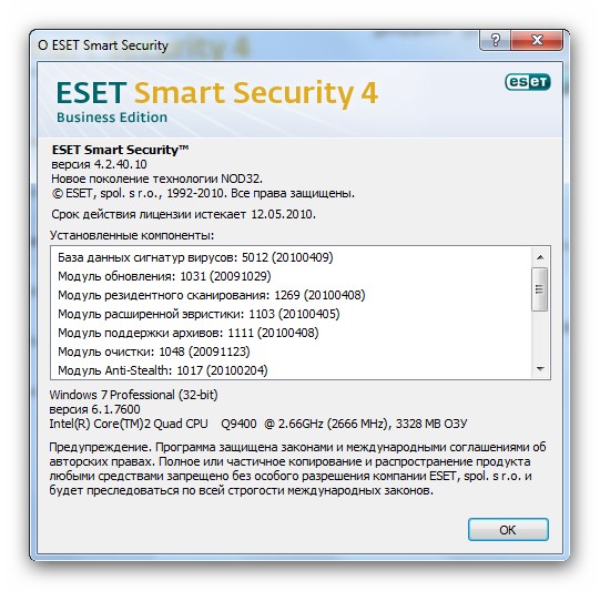 Спасибо автору и сайту ! Обновил свой ESET Smart Security 4.0.437 до версии ESET Smart Security 4.2.40.10. Для обновления антивирусных баз скачайте прогу "TNOD User & Password Finder 1.4.0 Final" и не парте себе мозги с обновкой !!! Спасибо за внимание !
