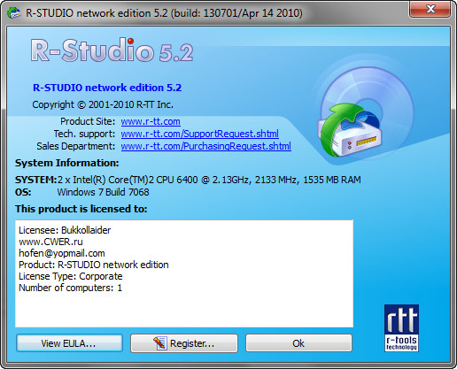 Скачать программу R-Studio 5.2 Build 130701 x32 (9,24 МБ):