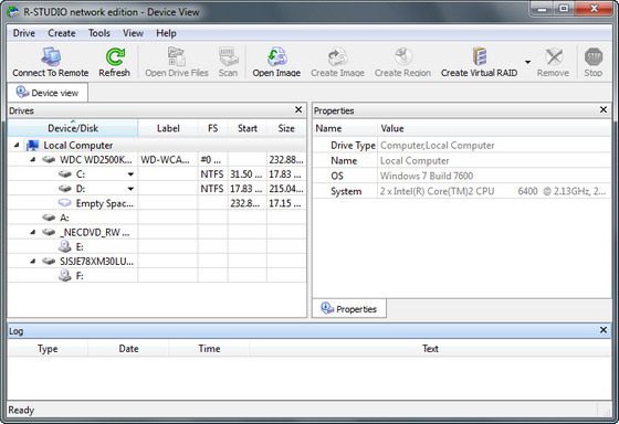 R-Studio - лучшее на сегодняшний день программное обеспечение для восстановления данных. Поддерживает файловые системы FAT12/16/32, NTFS, NTFS5, Ext2FS (Linux). Позволяет восстанавливать файлы, как на локальных логических и физических жестких дисках, так и на дисках, расположенных на удаленных компьютерах через компьютерную сеть.