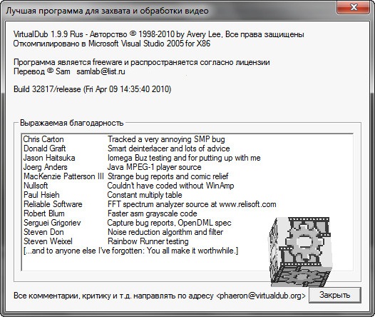 Скачать программу VirtualDub 1.9.9 Build 32817 Rus (5,12 МБ):